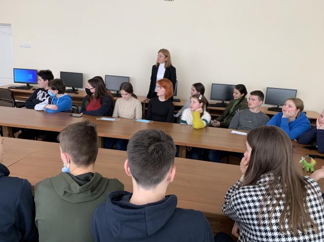 Також учні дізналися, що для свідомого вибору професії, необхідно ознайомитися з інформацією про актуальні професії на ринку праці, реально оцінити свої можливості, з’ясувати, чи відповідають вони вимогам обраної про-фесії. Школярам запропонували пройти тестування на визначення типу рекомендованої професійної діяльності.
