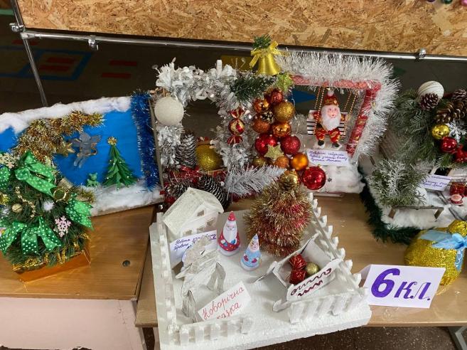 9 грудня в школі традиційно пройшла виставка новорічних композицій «Зимова феєрія». На виставку були представлені роботи учнів 1 — 11 класів. Цього дня в школі панувала справжня атмосфера свята. Кожна робота вражала глядачів своєю оригінальністю та технікою виконання. А новорічні композиції підтвердили, що фантазія наших дітей та батьків є безмежною. Найкращі роботи будуть представлені для участі в районному конкурсі.