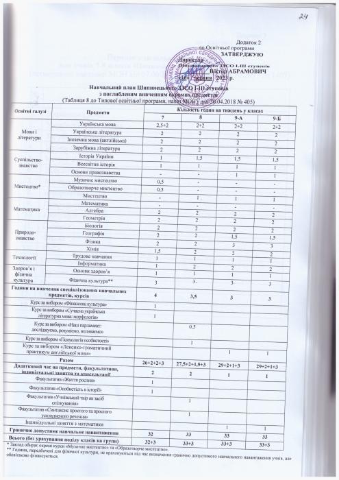 Освітня програма Шипинецького ЗЗСО І-ІІІ ступенів (ІІ ступінь) на 2023/2024 н.р.
