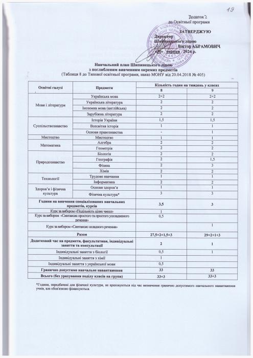 Освітня програма Шипинецького ліцею (ІІ ступінь) на 2024/2025 н.р.