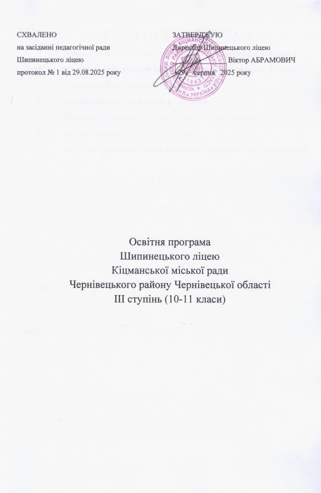 Освітня програма Шипинецького ліцею (ІІІ ступінь)