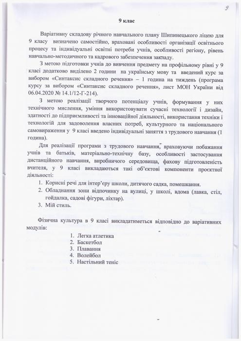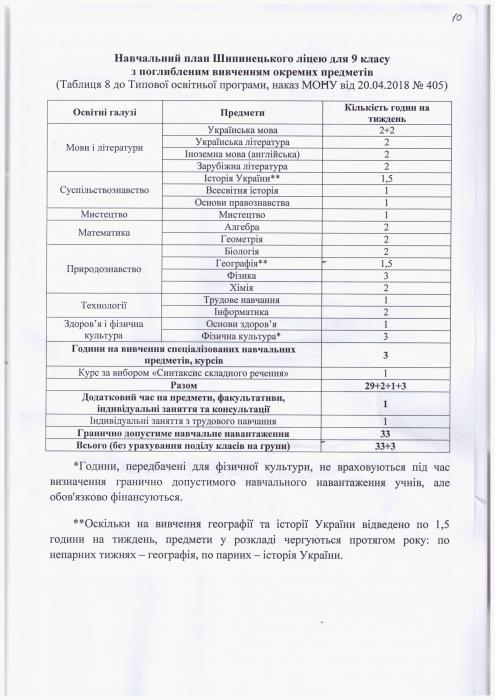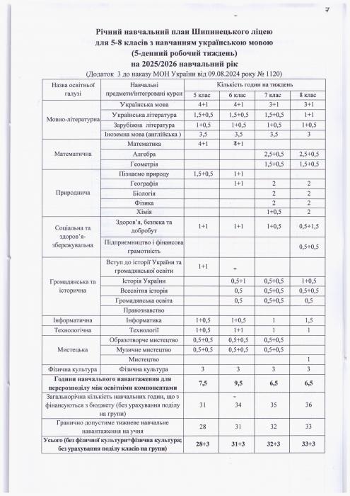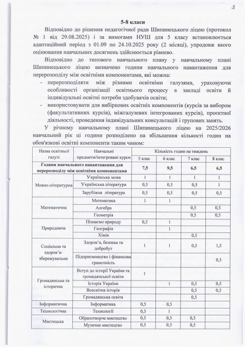 г÷íèé íàâ÷àëüíèé ïëàí Øèïèíåöüêîãî ë³öåþ íà 2025/2026 í.ð. ²² ñòóï³íü (5-9 êëàñè)