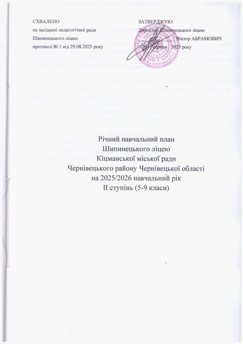 г÷íèé íàâ÷àëüíèé ïëàí Øèïèíåöüêîãî ë³öåþ ʳöìàíñüêî¿ ì³ñüêî¿ ðàäè ×åðí³âåöüêîãî ðàéîíó ×åðí³âåöüêî¿ îáëàñò³ íà 2025/2026 íàâ÷àëüíèé ð³ê äëÿ ²² ñòóïåíÿ (5-9 êëàñè) ñêëàäåíî íà îñíîâ³ íàâ÷àëüíîãî ïëàíó, âèçíà÷åíîãî â îñâ³òí³é ïðîãðàì³ çàêëàäó îñâ³òè äëÿ ²² ñòóïåíÿ.